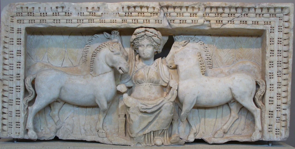 Reliëf van Epona geflankeerd door twee paardenstellen, uit Romeins Macedonië – Wikipedia